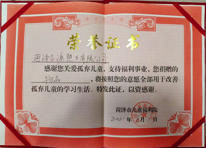2021年6月1日,向菏泽市儿童福利院捐赠5000元物品,用于改善孤弃儿童的学习生活。