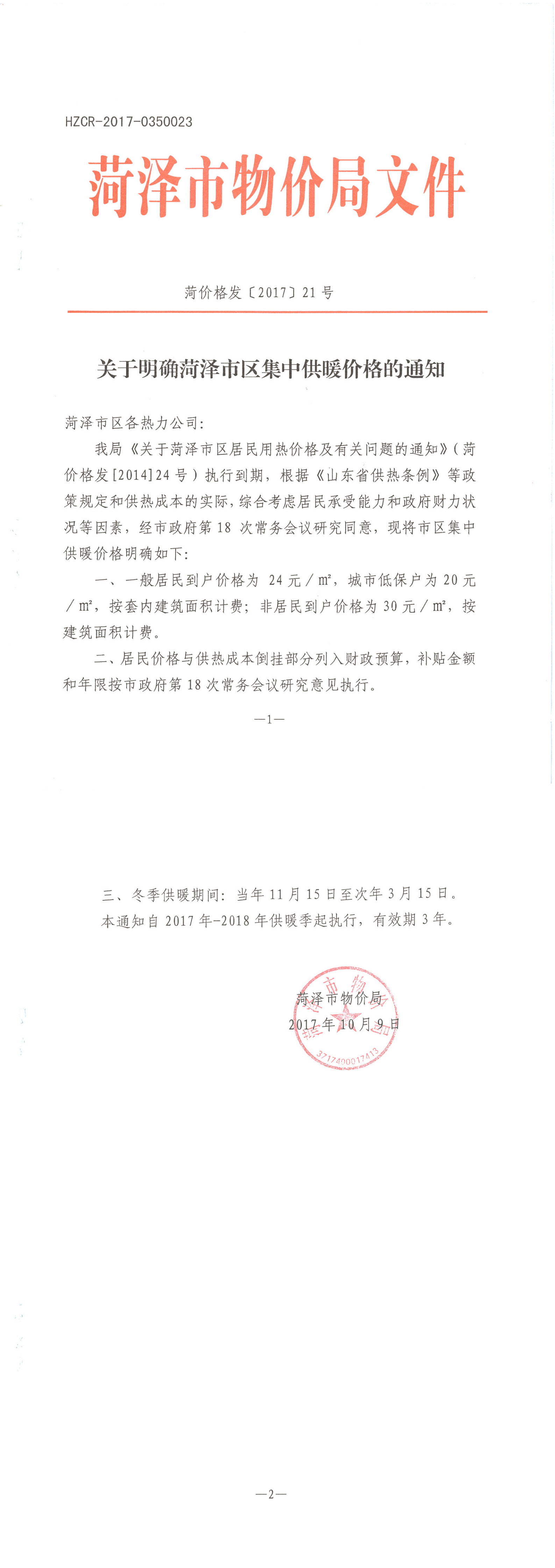 菏价格发〔2017〕21号